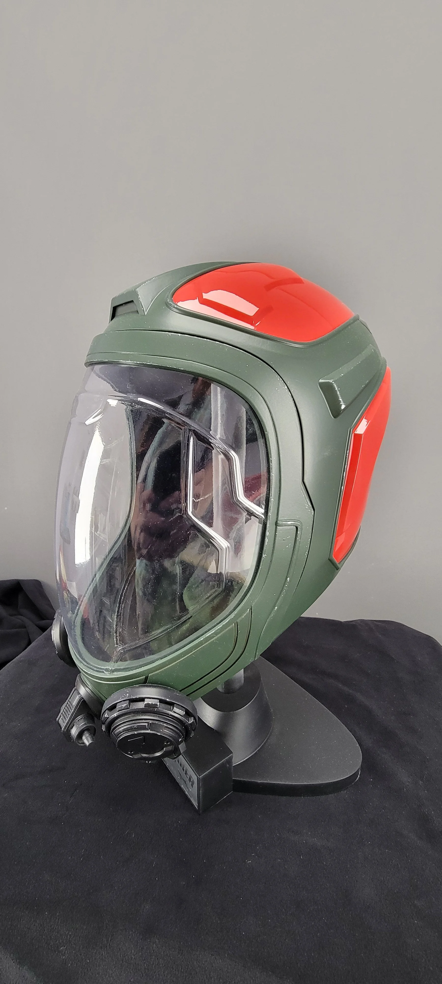 Under the direction of Michael Crow, using stellar concept design by Greg Semkow, we used a mix of Rhino3D and Zbrush to create a wearable helmet prop that included a temporary / removable visor, snap-in gasketing around the throat, and a magnetic-lock air assist that connected to the backpack.